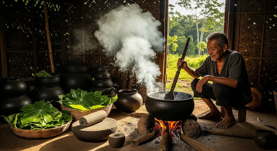 La cocina ancestral no se aprende en libros: se hereda en silencios, en ollas negras, en manos que saben. Cada plato tÃpico de nuestra tierra no solo alimenta el cuerpo, sino también la memoria colectiva. Detrás del upe, del inchicapi, de los tamales envueltos en hojas y de la fermentación sabia del masato, hay siglos de sabidurÃa, ritual y comunidad. Este es el sabor del rÃo, del monte, del fogón encendido al amanecer. Cocinar aquà es recordar, es resistir, es celebrar lo que somos.