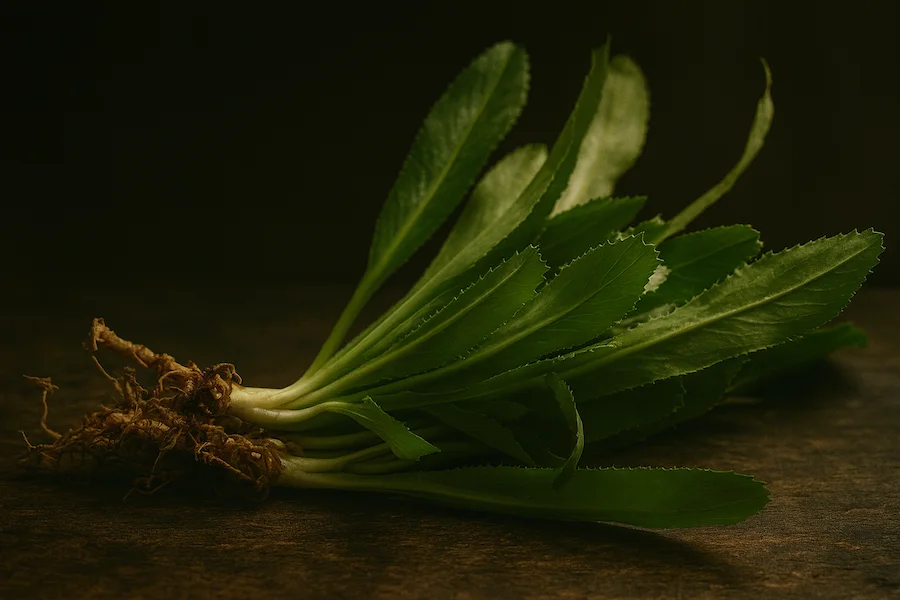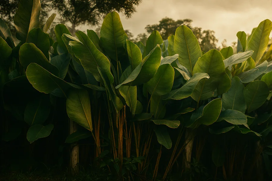 Planta selvática de hojas grandes, resistentes y aromáticas, utilizada tradicionalmente como envoltura natural en la cocina de la selva